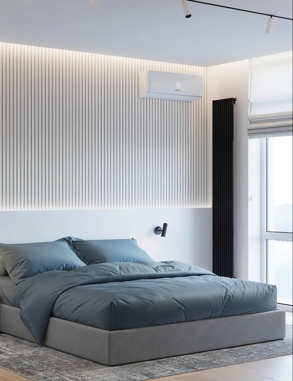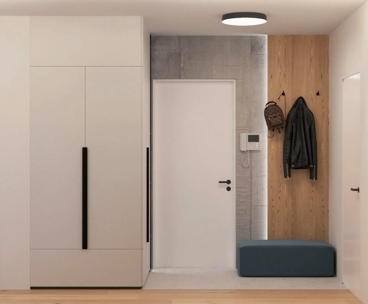 Квартира исполнена в современном минималистическом стиле. В площадь 65 м2 уместились – объединенная кухня-гостиная, мастер спальня, гостевая спальня и две ванные комнаты. Главным пожеланием заказчиков было создать максимально светлое пространство.