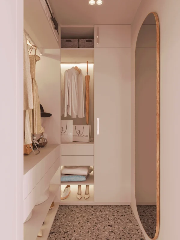 Заказчики пожелали создать мягкое и комфортное пространство, которое сможет подстроиться под разные цели, так как в будущем станет квартирой под аренду. А главное – квартира должна быть функциональной и иметь лаконические формы и детали.